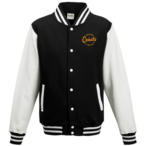 Comets Baseball collegetakki on ilmeikäs nepparikiinnitteinen collegetakki, joka yhdistää klassisen college-tyylin ja rennon mukavuuden. Raidalliset resorit hihansuissa, kauluksessa ja helmassa tuovat takkiin raikkaan ja urheilullisen ilmeen. Materiaali on pehmeää ja kestävää 70 % rengaskehrättyä puuvillaa ja 30 % polyesteriä, ja 330 g/m² painoinen kangas tuntuu laadukkaalta käytössä. Harjattu sisäpinta tekee takista erityisen miellyttävän päällä myös viileämmällä säällä. Käytännölliset yksityiskohdat, kuten nepparikiinnitys, taskun läpivienti ja kauluksen sisäpuolella olevat lenkit kuulokkeiden johdolle, tekevät takista toimivan arjen käyttöön.